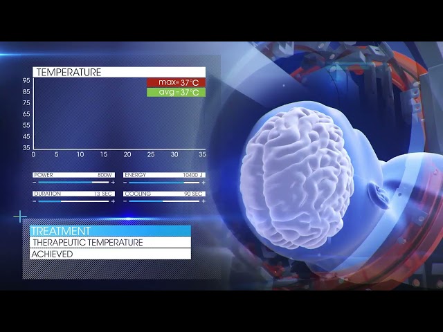 As ondas de ultrassom focalizam-se num pequeno ponto dentro do cérebro (núcleo ventral intermédio do tálamo). A temperatura no pontoalvo sobe o suficiente para que seja criada uma pequena lesão